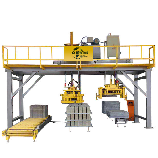 全自動(dòng)高位離線碼磚機(jī)生產(chǎn)線主要是泉州文德機(jī)械公司針對(duì)目前磚廠生產(chǎn)中,人工碼垛勞動(dòng)強(qiáng)度大、生產(chǎn)效率低而研發(fā)的一種專用碼垛系統(tǒng),可獨(dú)立運(yùn)行,大大提高了砌塊生產(chǎn)的自動(dòng)化。 主要由兩個(gè)部分組成:砌塊碼垛和托板回收碼垛。根據(jù)不同客戶需求,我們推出高位離線碼垛系統(tǒng)和低位離線碼垛系統(tǒng),主要區(qū)別在于:高位離線碼垛系統(tǒng)采用抓碼方式,低位離線碼垛系統(tǒng)采用疊碼方式。